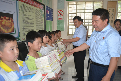 此次慰问活动,通许县法院为该校赠送了10台电脑和150册学习图书,价值达15000余元。送去的图书有《爱的教育》《骆驼祥子》《小学生作文》等等都是小学生喜爱的优秀图书,法院法官和学生们一边翻看图书一边交谈有关法律知识,共享节日的快乐。